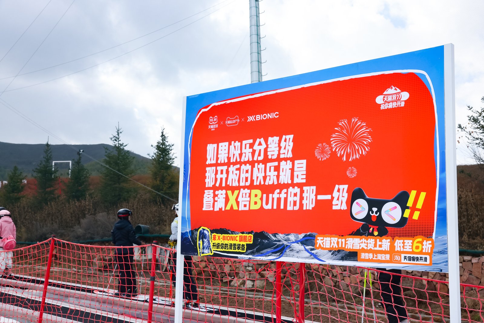 天猫举办“一年一度有才滑大赛”,将滑雪与抽象营销进行结合,参与者身着各种护具,零摔跤到达终点即为胜利,打造了一场全民参与的创意狂欢。